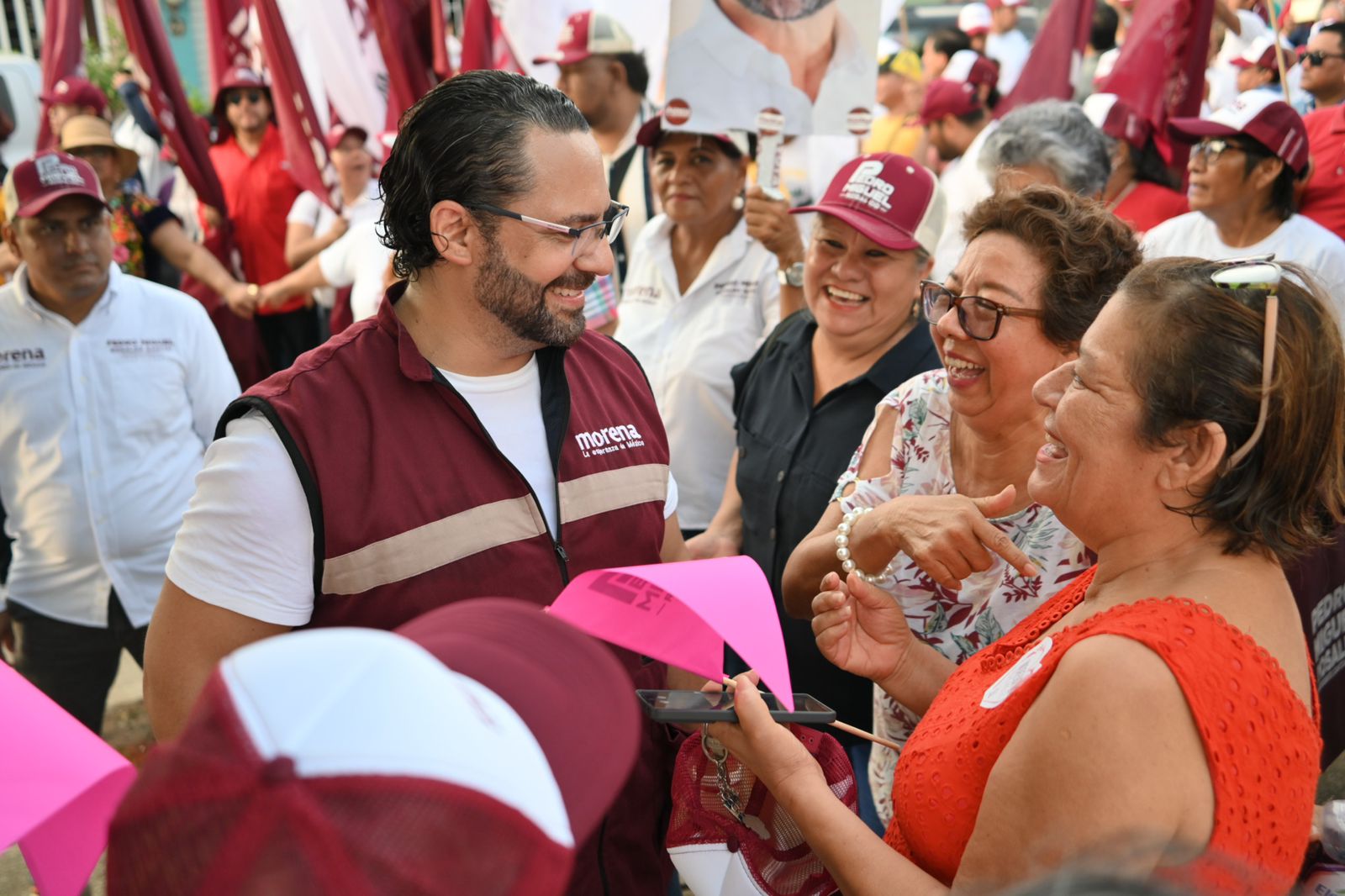 La colonia El Tesoro, bastión natural de Morena, recibió al candidato guinda Pedro Miguel Rosaldo García, y le comentó que la demanda más sentida se refiere al desazolve de los drenajes de la colonia.